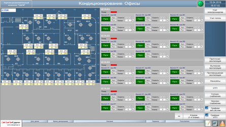Системы автоматизации и диспетчеризации построены на базе оборудования и программного обеспечения фирмы «Jonhson Controls», SCADA-система - «M3i».